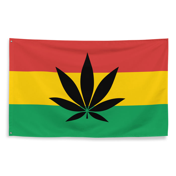 Bob Marley called, he wants his flag back—but you're not giving it up. With bold Rasta colors and a black leaf that means business, this flag brings irie vibes and subtle protest to your chill zone.